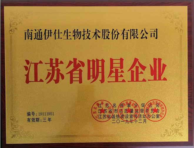南通伊仕生物技術(shù)股份有限公司榮獲江蘇省明星企業(yè)稱號 |