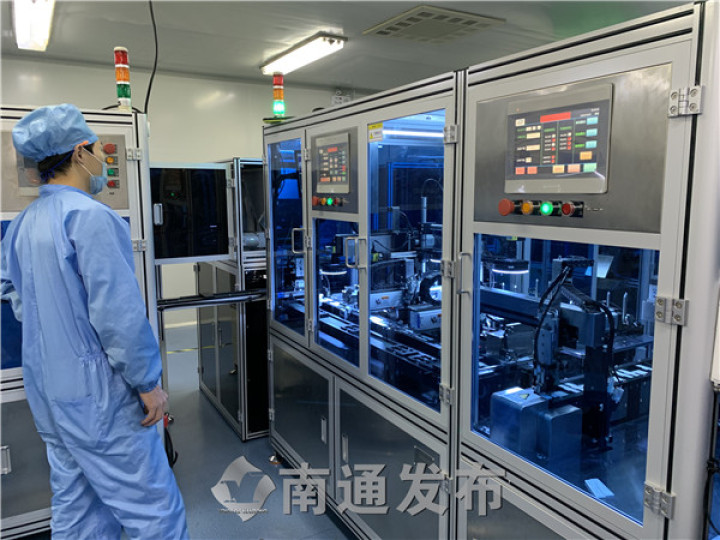 10月30日,南通伊仕生物技術股份有限公司生產(chǎn)車間內,一臺臺自主研發(fā)的全自動化設備馬力全開,零星的幾個工作人員身穿潔凈防護服,只需動動手指操作控制面板。分切、組裝、入袋包裝、批號打碼……一個個小小的試劑板從這里誕生,被運往世界各地,日產(chǎn)量約170萬人份。